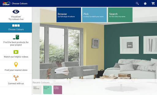 - Browse, pick and search for other colours while viewing your room