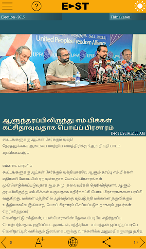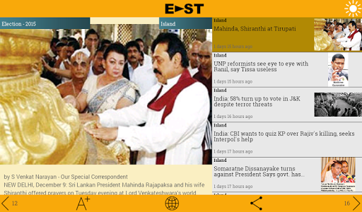 East packs your daily dose of news, entertainment, features, pictures, videos and much more in a simple and delightful interface. It allows you to personalize your feed, so you only read what interests you. East also gives you the liberty to share content through the platform of your choice. You can now sit back and enjoy reading your favourite Sri Lankan newspaper, in English, Sinhala or Tamil, even if your phone doesn't support the language.