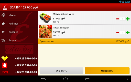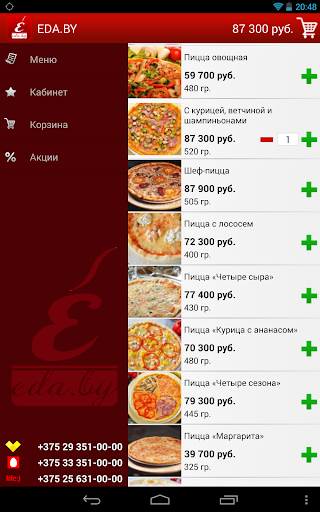 Выбирайте понравившиеся блюда, в пару кликов оформляйте заказ и отслеживайте статус его выполнения. Среднее время доставки еды в пределах Минска – 1 ч. 10 мин.