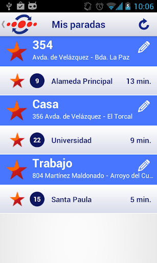 - Paradas favoritas, puedes seleccionar tus paradas habituales como favoritas y obtener al instante el tiempo de paso del próximo autobús.