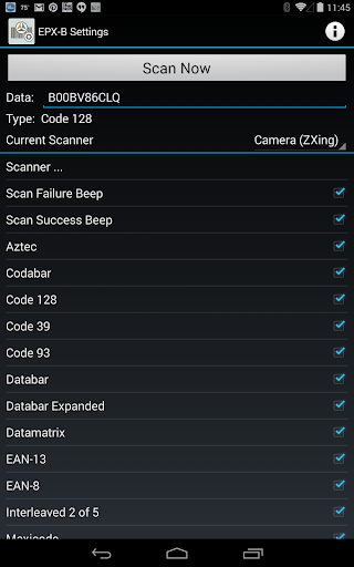EPX-B Barcode Scanner Core gives apps the ability to use any EPX-B compatible barcode scanner, including Motorola USB scanners (using separate EPX-B SNAPI driver). The rich API gives full control to the app developer, even over scanner-specific features. Comes bundled with a ZXing-based scanner that uses your device's built-in camera, and a Settings application that allows you to enable or disable scanner-specific features.