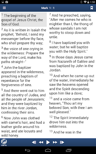 FREE: RSV-Bible text with entire Gospel of Mark audio (99 minutes) featuring Blair Underwood as Mark - plus full text of the RSV-CE Bible and access to EWTN Live content. At anytime you can purchase the complete New Testament audio.