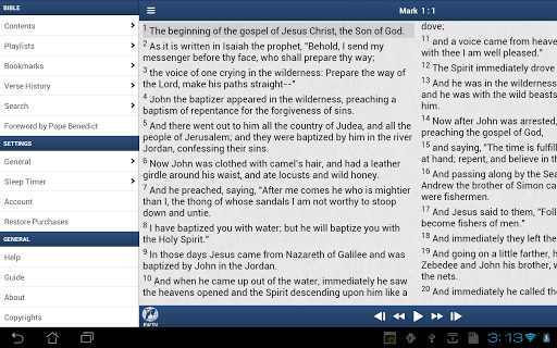 • Complete text of RSV-CE synchronized with audio for the New Testament.