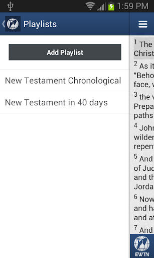 • Use the built in playlist to hear the New Testament in 40 days or in Chronological order.