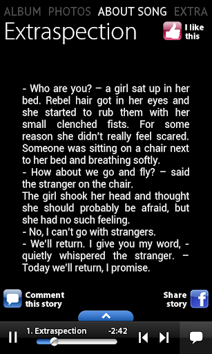 A true music album is now 3 equal elements together: Music + Graphics + Story = 3plet, a revolutionary app, the new music industry format. Add here Song Lyrics, Music Videos and integration with Facebook and you get a wholistic digital piece of art, delivered to you straight from the artist! The New Era of music albums is here!