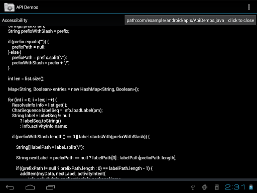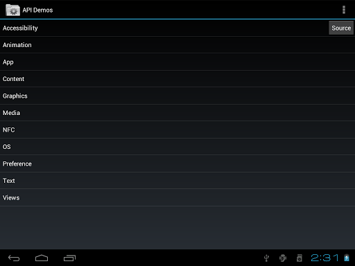 The source code of this APIDemos app from the Google android-sdks\samples\android-15\ApiDemos.