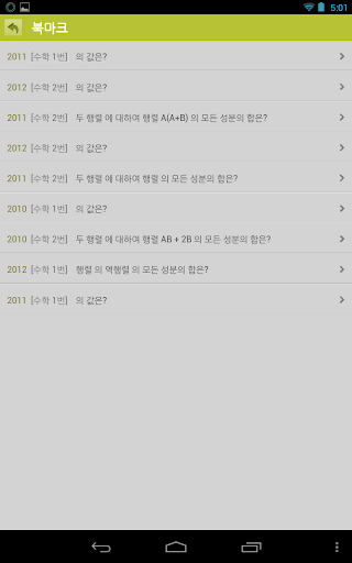 영역별과 모든 과목별 수능 기출문제 앱들로 구성되어 있고