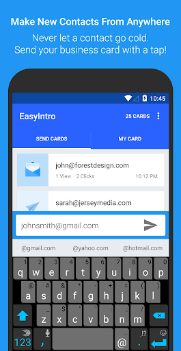 - Make your impression memorable. Send a beautiful business card straight to anyone's email, even if they don't have the EasyIntro app!