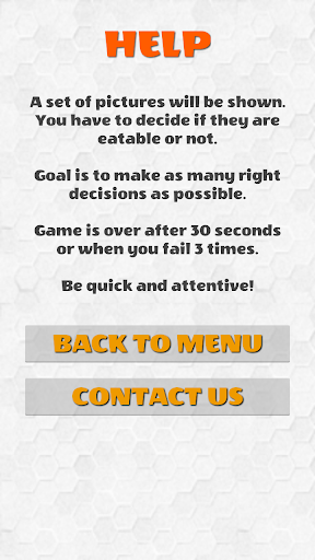 A set of pictures will be shown. You have to decide if they are eatable or not.