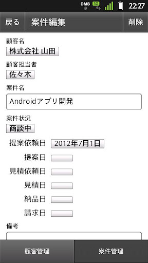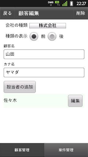 顧客、案件情報を登録できます。