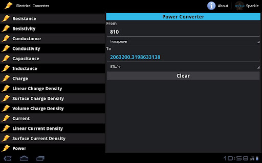 Electrical Converter is a conversion calculator that can quickly and easy translate different electrical units of measure. It consists of 16 Categories with 173 Units and 2162 Conversions.