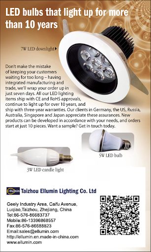 Taizhou ellumin lighting located in Taizhou China, is a professional manufacturer specializing in the R&D, production and sales of LED light, such as LED Bulb, LED Ceiling Light, LED Spot Light. With high quality products, competitive price, fast delivery and excellent service, we won a good reputation from our customers both at home and abroad. In response to the government's calling for "energy-saving and emission-reduction", we make every effort to R&D and technical innovations. Thanks to the automatic manufacturing equipment, quality control system and experienced technical engineers, we can finally provide customers with LED light products of high energy saving, low brightness decline and long life span. Our main products include LED Bulb Light, LED Candle Light, LED Ceiling Light, LED Corn Light, LED Spot Light, LED Tube Lightwhich are widely recognized and trusted by our users. All of our products have attained CE and ROHS certifications and been exported to many countries and regions, such as Germany, America, Russia, Australia, Singapore, Japan, etc. We can also develop and design new products according to our customers' requirements. Creating value for clients and saving energy for society is our goal. Taizhou ellumin lighting is committed to spreading environment friendly lighting to every corner of the worldsaving the energy, protecting our living environment and bringing a better world for people. Let our LED "light" your life!