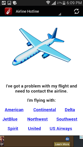 Lose your baggage or miss your flight? Nine major U.S. airlines are listed with a hotline number pre-installed for each.