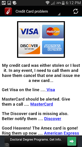 Is your credit card lost or stolen? The direct numbers to the four major companies are at your fingertips.
