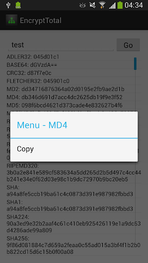 ADLER32, BASE64, CRC32, FLETCHER32, MD2, MD4, MD5, MD5(MD5), MYSQL5, RIPEMD128, RIPEMD160, RIPEMD256, RIPEMD320, SHA1, SHA224, SHA256, SHA384, SHA512, TIGER, WHIRLPOOL.
