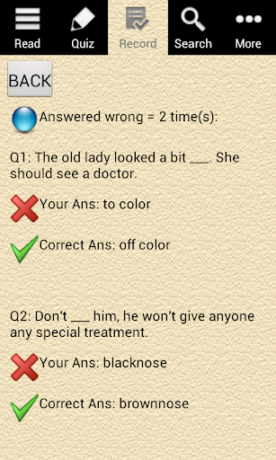 ★ 方便的溫習設計:每答完一條題目,您可選擇立即顯示該題目相關的成語。您更可以建立您自己的成語清單,方便您重複溫習所學,加深記憶!