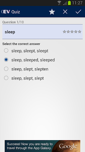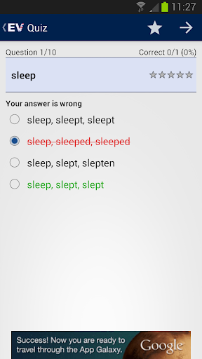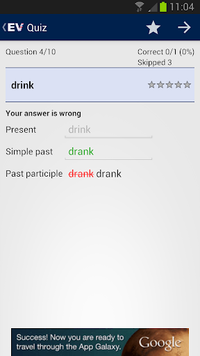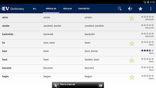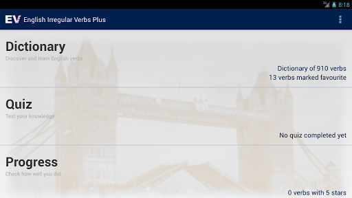 English Irregular Verbs Plus is a helpful tool to learn and practice present, past and past participle forms of English language verbs. It contains a dictionary of 300 irregular and 610 regular verbs. By including both irregular and regular verbs, the application allows you to truly test your knowledge.