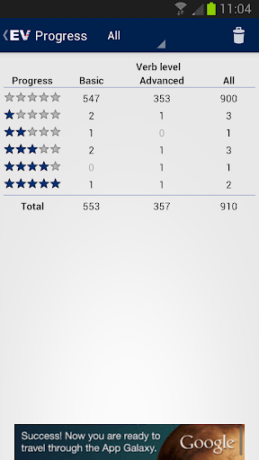 The application tracks your learning progress and displays that progress with regards to each verb. To make your learning easier, verbs that you know less are selected more often for questions in the quiz.