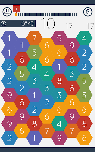 This is a puzzle game with numbered hexagon panels; to find the answer, add the numbers in the hexagons as you trace them with your fingers.