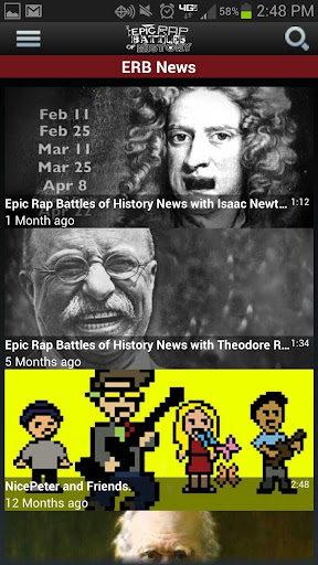 Hello, my name is Sir Isaac Newton, and this the official Epic Rap Battles of History video player. If I knew what an app was, I would tell you that it works on 'Droids'. But I don't, so I will simply tell you it is an easy and free way to watch all the ERB videos in one place, and it works by magic.