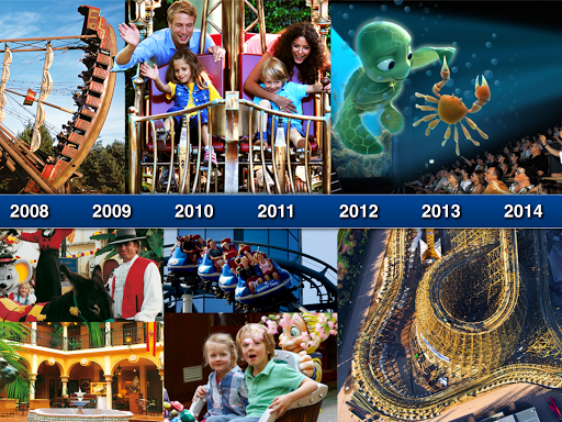 Navigieren Sie sich entlang eines Zeitstrahls und erfahren Sie, welche Attraktionen und welche Meilensteine Jahr für Jahr neu dazu gekommen sind.