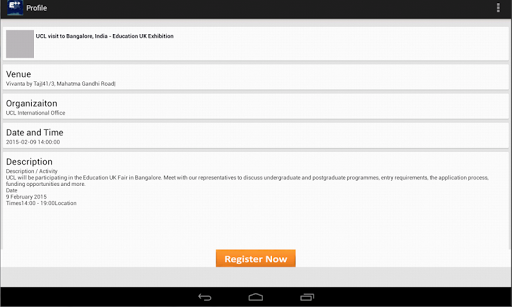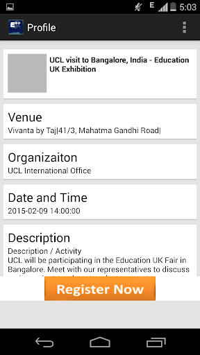 Users can constantly get updated with events held in the area chosen. The app provides link to online Registration. Users can browse through events categories like concerts, festivals, sports, conferences, Informal through Event ++. Getting the feed from official websites like EventBrite.