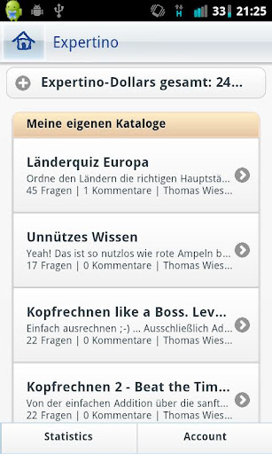 Du bekommst 7 Startkataloge aus den verschiedensten Themenbereiten und ein Startkapital. Spiel dich durch die Quiz-Welt und werde zum König der Expertino-Welt! Lade dir neue Kataloge auf Dein Handy.