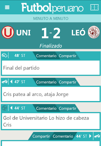 - Notificaciones: recibe en tu celular los eventos del partido. Puedes estar informado sobre tus partidos favoritos minuto a minuto.