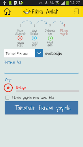 Fıkra Anlat uygulamamızla, kullanıcıların kendi sesleriyle kaydettikleri eğlenceli fıkraları dinleyebilir, ya da anlatacağınız fıkralarla, fıkra anlatma becerinizi konuşturabilirsiniz.