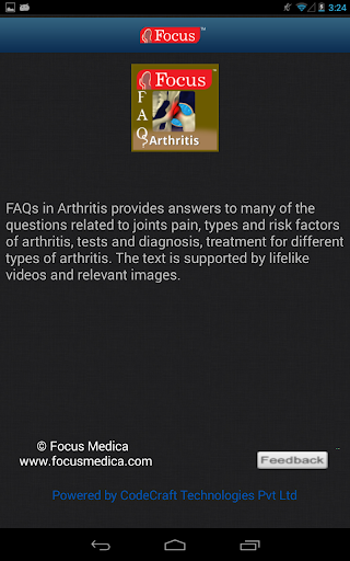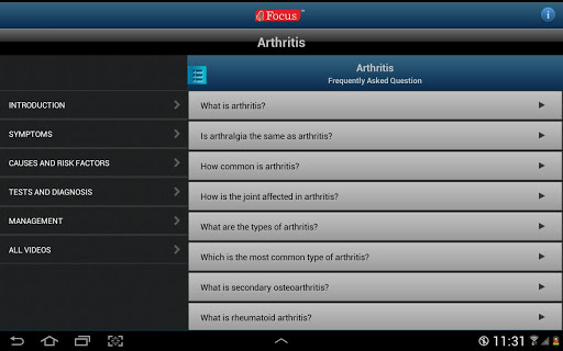 FAQs in Arthritis provides answers to many of the questions related to joints pain, types and risk factors of arthritis, tests and diagnosis, treatment for different types of arthritis. The text is supported by lifelike videos and relevant images.