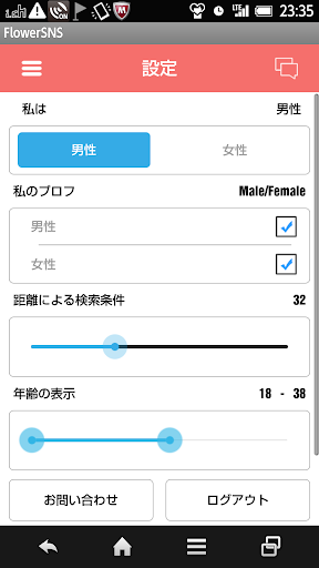 検索条件には、位置情報による距離や男女による検索条件が行われます。