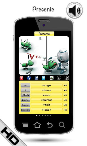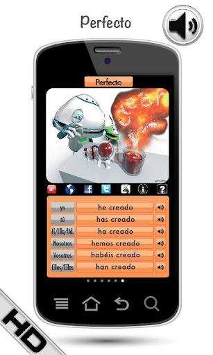 这款高度刺激的"获奖"记忆应用将向你展示如何学习西班牙语动词及它们的"关键"西班牙语变位, 速度比其他的传统方法快7倍。这款应用完全由说西班牙母语的人发音, 完美适合所有层次的学生。