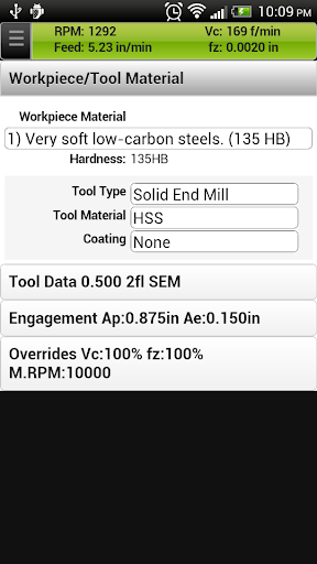 ★ Built in tap drill calculator to calculate not only cutting speed and feed , but also drill dia in accordance with desired thread engagement.