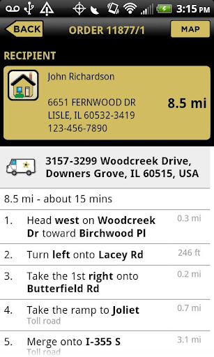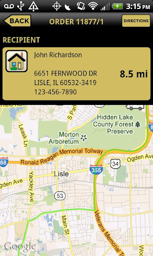 • Map and Directions: View a map of the current truck and recipient locations, plus get turn-by-turn directions.