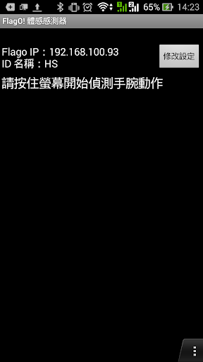 這個 App 會將手機感測到的加速度值與判別出的傾斜方向、晃動動作傳遞給 FlagO! 主控模組, 以便藉由手機體感控制方式遙控 FWIDE 系統中的其他模組。