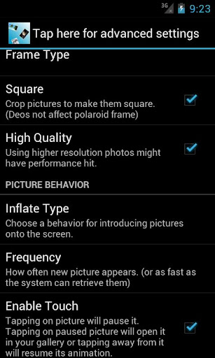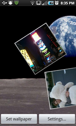 Photo live wallpaper that displays pictures from your gallery on home screen and animates them so they appear to be falling down to the bottom of the screen.