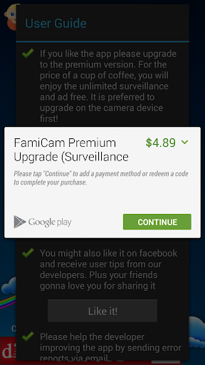 當您測試滿意之後可以選擇升級雲視野專業版。用市面監控系統1%的價格,一杯咖啡的錢就能升級至專業版。去除廣告,不限攝像頭使用時間,讓你真正擁有神話裏的千裏眼、順風耳,有效可靠地保護您的家人,財產安全。如有問題請發郵件至wardencam360@gmail.com