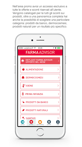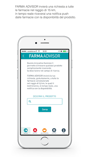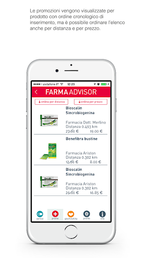 Grazie alle promozioni di prodotti farmaceutici presenti nell’app potrai interagire con le farmacie di tutta Italia e risparmiare acquistando prodotti di qualità. Ogni farmacia riserva esclusivamente per FARMA ADVISOR sconti e prodotti in promozione permettendo, in maniera semplice e divertente, di risparmiare tempo e denaro.