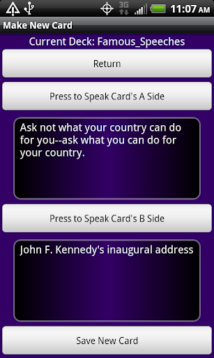 Make flashcards in a flash with this smart phone app. You can literally make a flashcard in seconds--even if it consists of over a hundred characters. This app incorporates voice recognition software, allowing you to create a card by speaking instead of typing. Then, if you are fussy, you can still keyboard-edit the card to touch up imperfections.