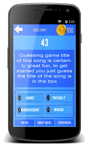 Apps Quiz FREE Install this application in your phone. Quiz Guess Song is a Quiz game to guess the title song and the lyrics. It's nice if you can win every level, because the game is made very simple so easy to understand displays.