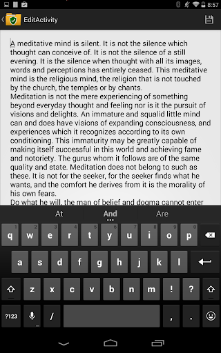 # Create/Edit: You can create or edit a text file. To create a new file, click the menu button on top. The new file will be created in the last folder operation.