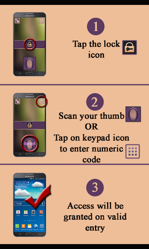touching the lock icon or pressing the volume down key, scan your finger and the application will grant