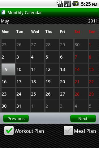 Calendar Module: Daily journal displaying scheduled workouts and meals, look to the past, look up future scheduled workouts/meals, chart workouts and meals from calendar etc...