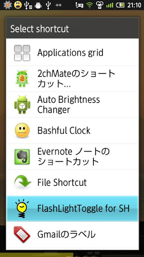 FlashLightToggle for SH is an app to put the lights on for Sharp devices(such as AQUOS PHONE).