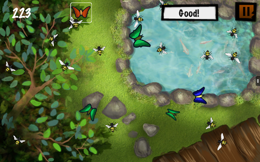 The well-being of the butterflies is at stake! Use your quick reflexes to catch and protect them from danger. But watch out! The killer bees may get angry and come after you. Catch the queen ant and prepare to stomp out her cavalry for a satisfying bonus.
