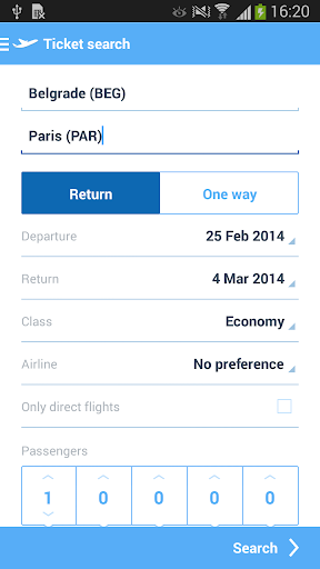 With Fly Fly app you can find and book your flights.