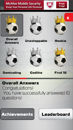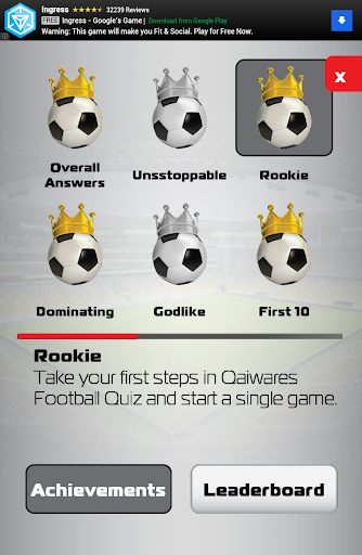 Your best accomplishments will be saved and you can keep track of your progress in becoming true legend of “Football Quiz Next Generation” through special scoreboards, overall leaderboard and achievement awards.