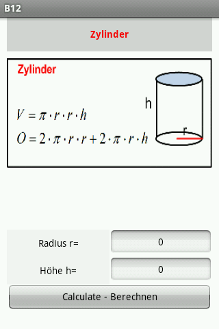 Formelsammlung ( Mathematik + Geometrie ) mit Berechnungsfunktion angelehnt an Hauptschule Abschlussprüfung.