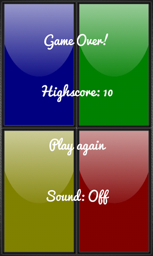 "Four Colors" is a "Simon Says" like game for your Android device. Try to repeat the color sequence shown and keep track of your highscore.