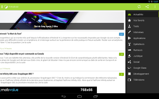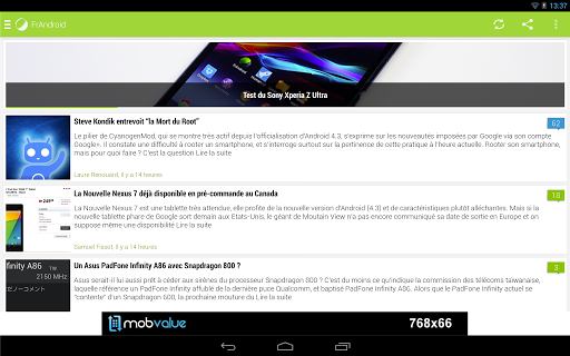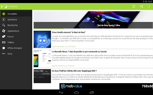 Chaque jour, vous retrouverez l'actualité d'Android, des tests, des prises en main, des analyses, des dossiers et bien d’autres choses encore. Vous pouvez également rejoindre le forum et échanger avec plus de 100 000 membres sur plus d'1 million de sujets créés.